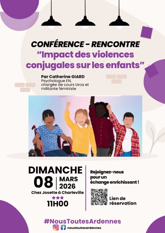 En amont de la marche, une conférence-rencontre se tiendra à 11h00, Chez Josette, autour d’un thème particulièrement sensible : « L’impact des violences conjugales sur les enfants ». Elle sera animée par Catherine Giard, psychologue de l’Éducation nationale, chargée de cours à l’URCA et militante féministe. Cette matinée d’échanges vise à mettre en lumière les conséquences souvent invisibles des violences au sein du couple sur les plus jeunes, et à ouvrir un espace de réflexion collective accessible à toutes et tous.