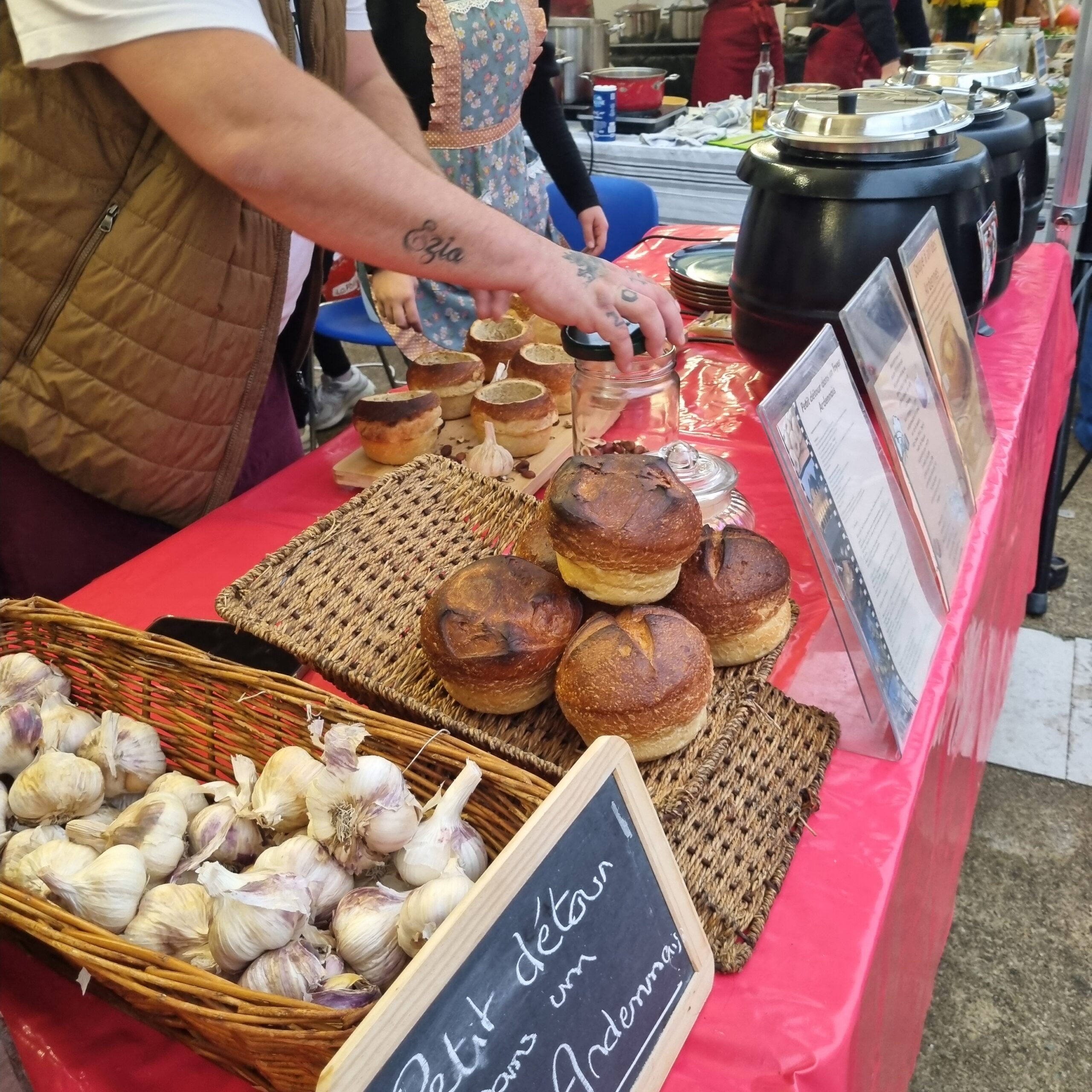 Parmi les stands, certains proposaient des soupes venues d’ailleurs, donnant au festival une dimension à la fois internationale et inter-départementale. Nous nous sommes notamment arrêtés au stand n°3, qui présentait une création mêlant subtilement produits des Ardennes et de l’Ardèche.