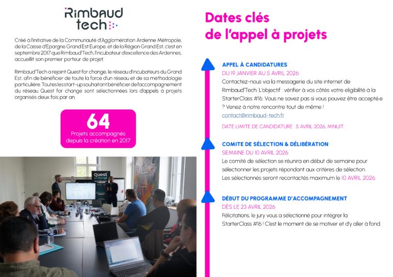 Rimbaud’Tech lance son Appel à Projets #16 et accompagne de nouveaux porteurs de projet souhaitant structurer, tester et développer leur activité dans les Ardennes.